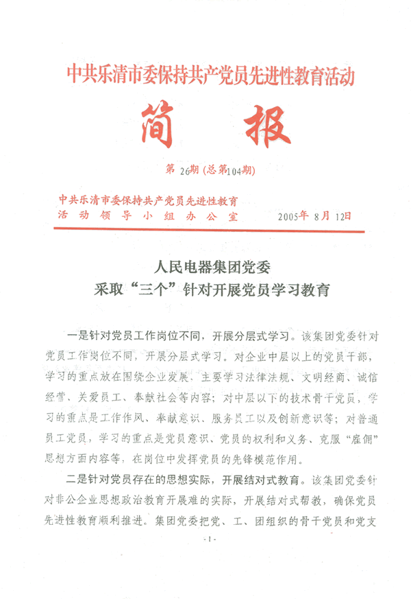 中共樂清市委保持共產(chǎn)黨員先進(jìn)性教育活動簡報